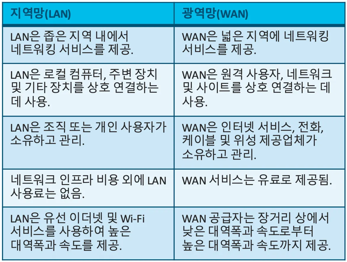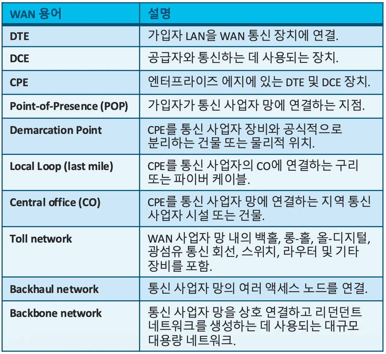 - LAN 경계를 넘는 넓은 지리적 영역을 서비스