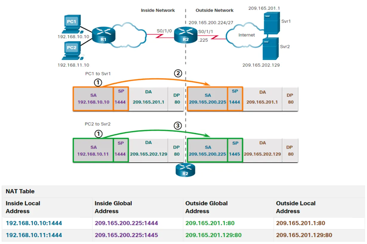 - NAT 라우터가 클라이언트로부터 패킷을 수신할 때 소스 포트 번호를 사용하여 특정 NAT 변환을 고유하게 식별