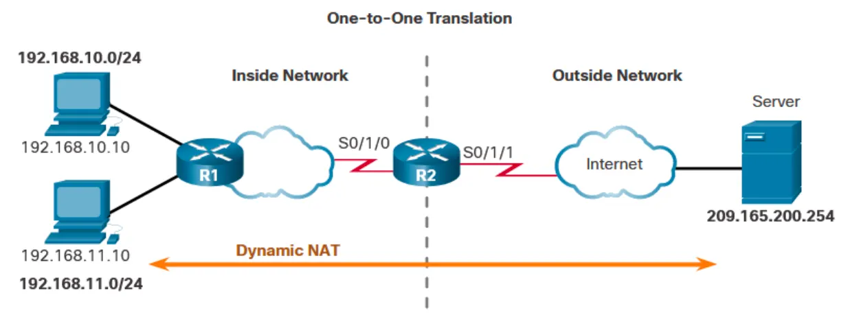 - 변환할 주소를 식별(허용)하는 표준 ACL 구성