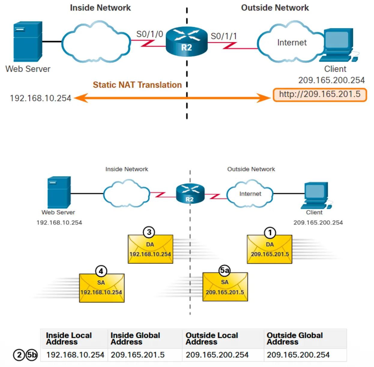 - 내부 글로벌 주소: 외부에서 본 출발지 장치 주소