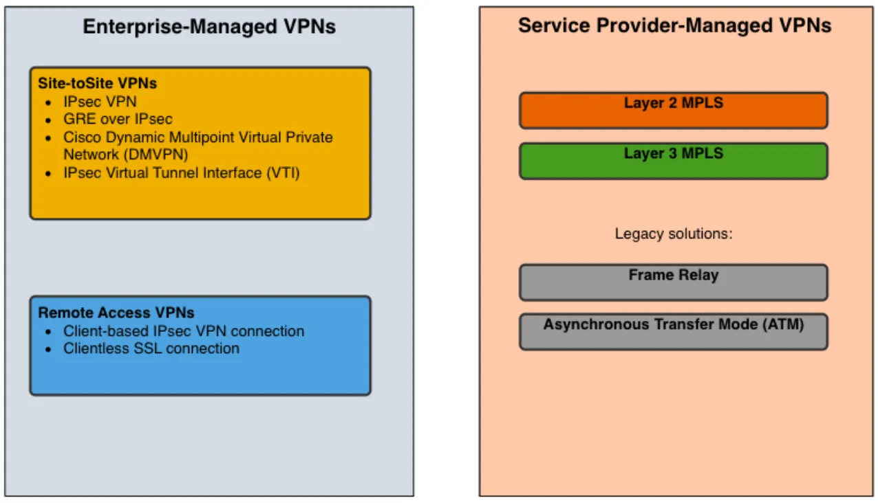 - 오늘날 최신 VPN은 IPsec(Internet Protocol Security) 및 SSL(Secure Socket Layer) VPN과 같은 암호화 기능을 지원하여 하나의 사이트와 다른 사이트 간의 네트워크 트래픽을 보호