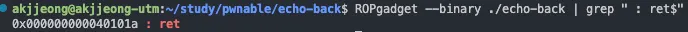 ROPgadget을 사용하여 ret 주소만 검색하여 0x40101a를 얻었다.